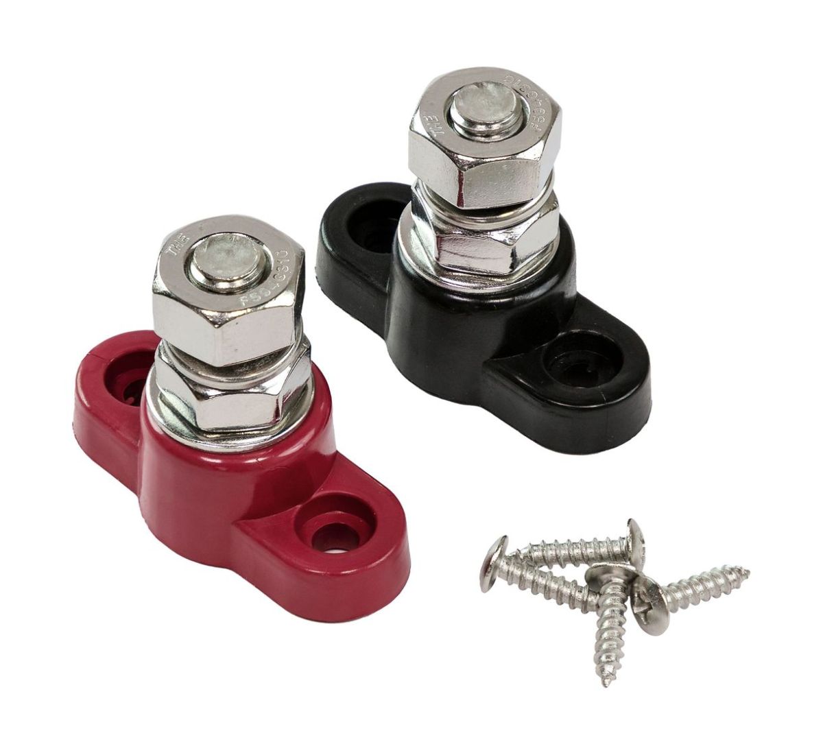 Две клемы черного и красного цвета с резьбой М10