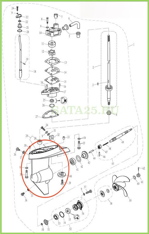 Корпус редуктора к лодочному мотору Hangkai 5-6 л.с.