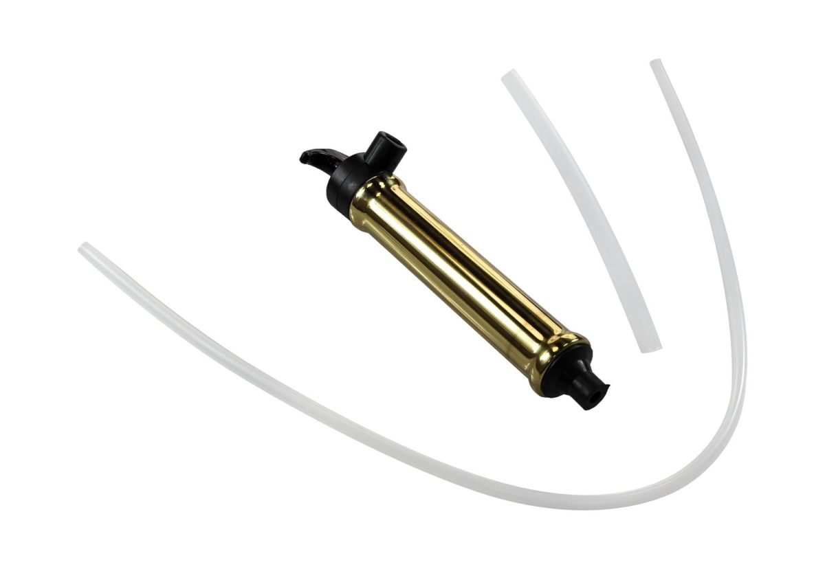 Насос ручной масляный. Предназначен для откачивания масла из картера стационарного мотора или четырехтактного двигателя гидроциклов. Изготовлен из латуни и неопрена. Заборная трубка - диаметр 7 мм, длина 700 мм. Трубка сливная - диаметр 12 мм, длина 250 мм.