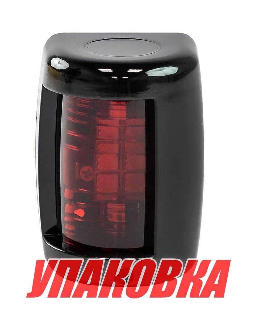 Левый отличительный — красный, сектор освещения 10 румбов, освещает дугу горизонта от направления прямо по носу до двух румбов влево позади траверза.