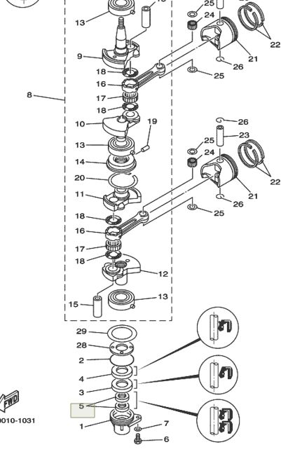 Сальник торсионного вала Yamaha 15, Yamaha 9.9