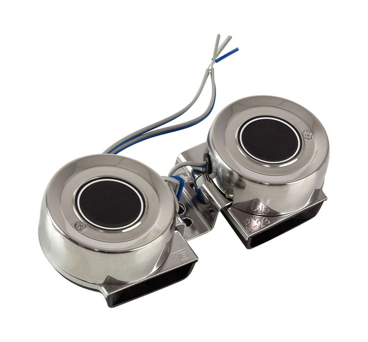 Электрический двухтональный сигнал с покрытием из нержавеющей стали. Диаметр крышки 76 мм.